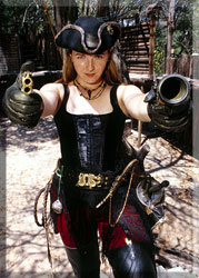 If it's a pirate's life for you and you'd like it to be for everyone else, too, then bring in a pirate to help fly your jolly roger. This feisty lady pirate will add just the right amount of nautical ambience to your buccaneer's ball.